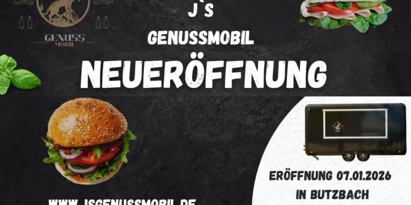 J’S Genussmobil startet am 7. Januar 2026 in Butzbach Am 7. Januar 2026 eröffnet J’S Genussmobil seinen Foodtruck in Butzbach. Hinter dem Konzept steht ein Gründer mit 15 Jahren Erfahrung…