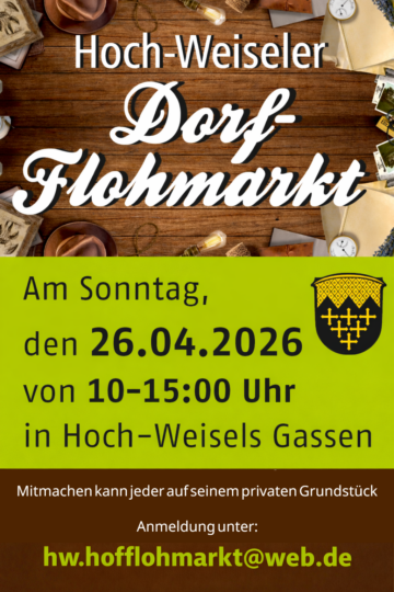 Am Sonntag, den 26.04. findet wieder unser Dorfflohmarkt statt. Weitere Informationen zur Anmeldung erhaltet ihr in Kürze, dazu werden Infozettel in jeden Briefkasten verteilt.