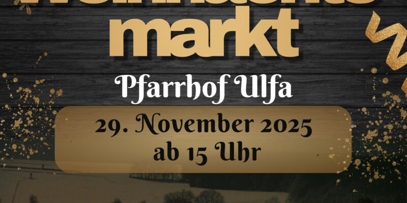 Am Samstag, dem 29. November findet der traditionelle Weihnachtsmarkt im Ulfaer Pfarrhof in der Mittelstrasse statt. Er startet um 15 Uhr mit Kuchen und Waffelvariationen der Landfrauen im Gemeindesaal, Kreativstationen,…