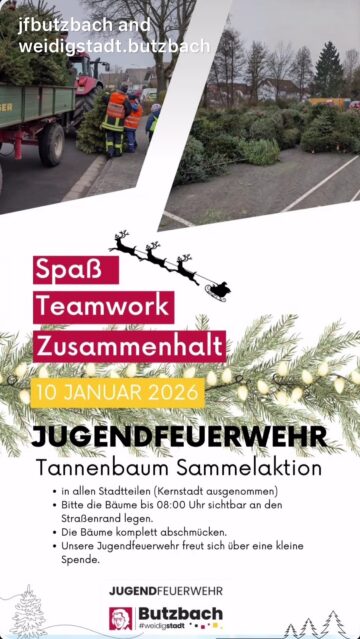 Am Samstag, den 10. Januar sind die Jugendfeuerwehren wieder für euch in allen Stadtteilen (Kernstadt ausgenommen) unterwegs und sammeln eure ausgedienten Weihnachtsbäume ein!